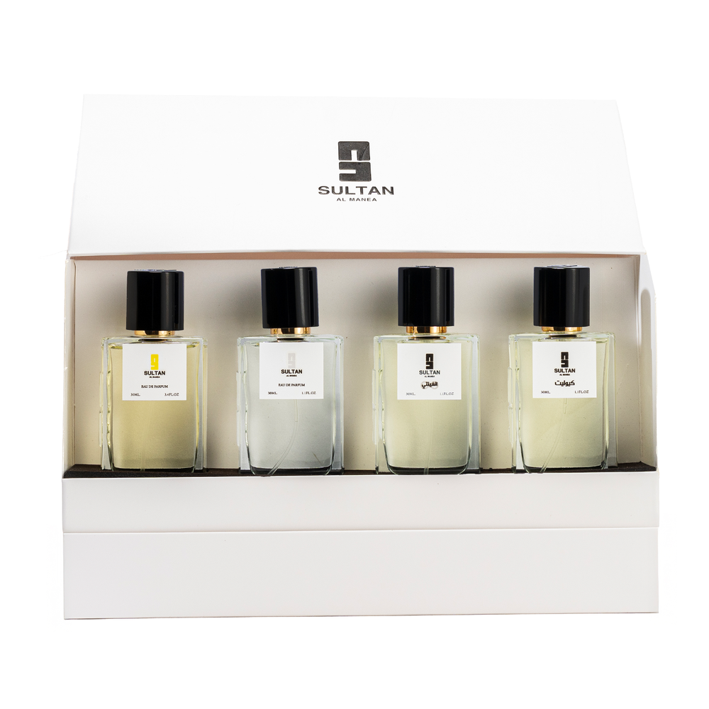 بوكس يجمع أكثر العطور مبيعآ انفينتي - كيوليت - الرمادي - الأصفر.