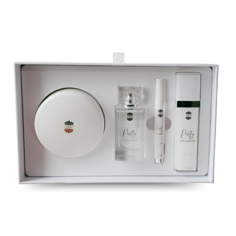 مجموعة مسك العروسة بريتي هي مجموعة فاخرة مصممة خصيصاً للعروس، تضم أفضل وأجمل أنواع المسك التي تمنح البشرة رائحة مميزة وطويلة الأمد. تعتبر هذه المجموعة الاختيار الأمثل لتكملة طلة العروس، حيث تمزج بين روائح المسك الفاخرة لمظهر أنيق ومفعم بالأنوثة. يمكن استخدامها في أي وقت لتعزيز شعورك بالجمال والثقة.