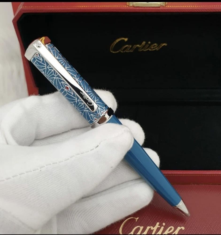 اسم الموديل: كارتير سانتوس بولبوبينت Santos de Cartier ballpoint موديل عريض نوع الحبر: ناشفلون الحبر: أزرق , اسودالقلم درجة أولى طبق الأصلتحت الضمان والشرطاللي يشوفه كانه يشوف الأصليمن حيث الوزن والشكل واللونمضمون من تغير اللون مع العطر